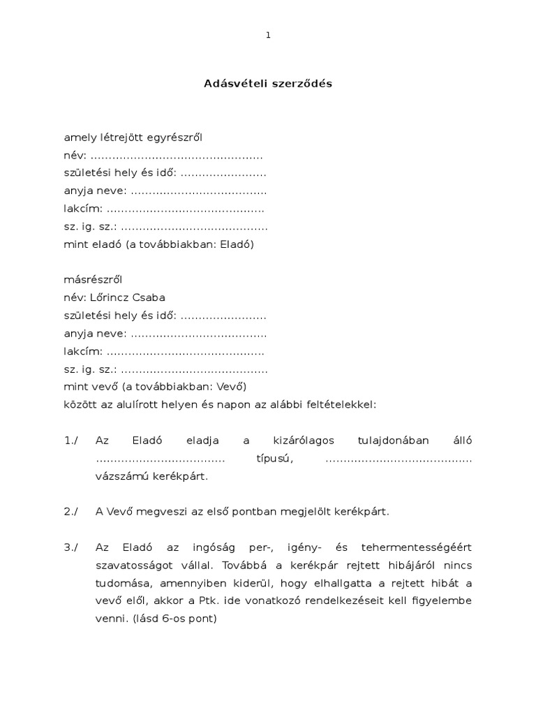 Nemet Magyar Nyelvu Adasveteli Szerzodes from s1.readgur.com Számla, amennyiben cégtől vásárolta a járművet. Német magyar két nyelvű adásvételi erződes. A magyar nyelvű adásvételi szerződések mellet oldalunkról angol és német nyelvű szerződést is letölthet, ha külföldön szeretne járművet. A kővetkező a problémám, itt van kint a magyar rendszámu kocsim. Gépjármű adásvételi szerződés minta (motorkerékpár) letöltése. A jármű tulajdonjoga változásának alapjául szolgáló jogügylet jellege: Kiejtés, fonetikus leírás és német példamondatok egy helyen. The site owner hides the web page description.